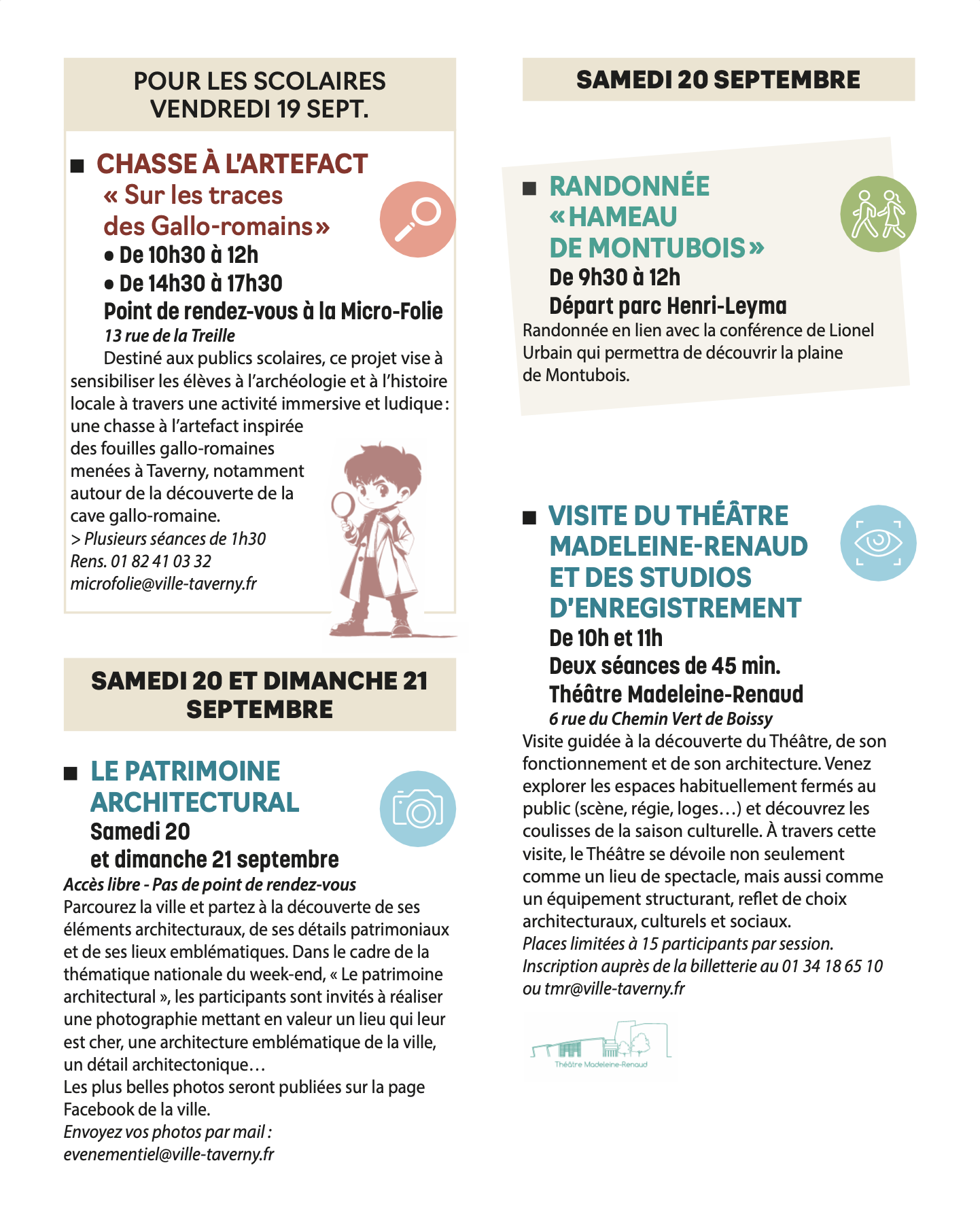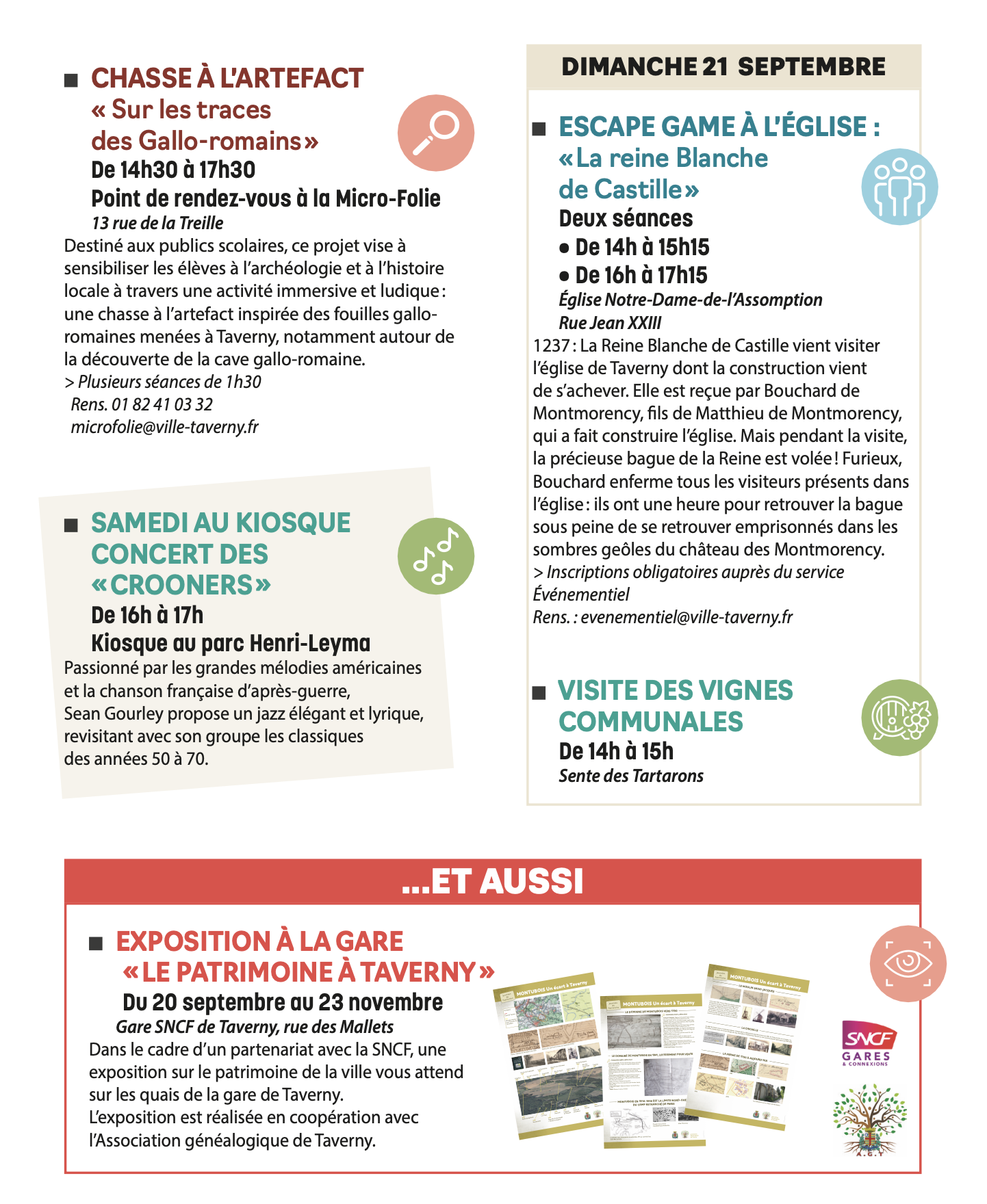 Réservez vite votre place en vous inscrivant auprès du service Événementiel : 01 30 40 50 39 - evenementiel@ville-taverny.f
