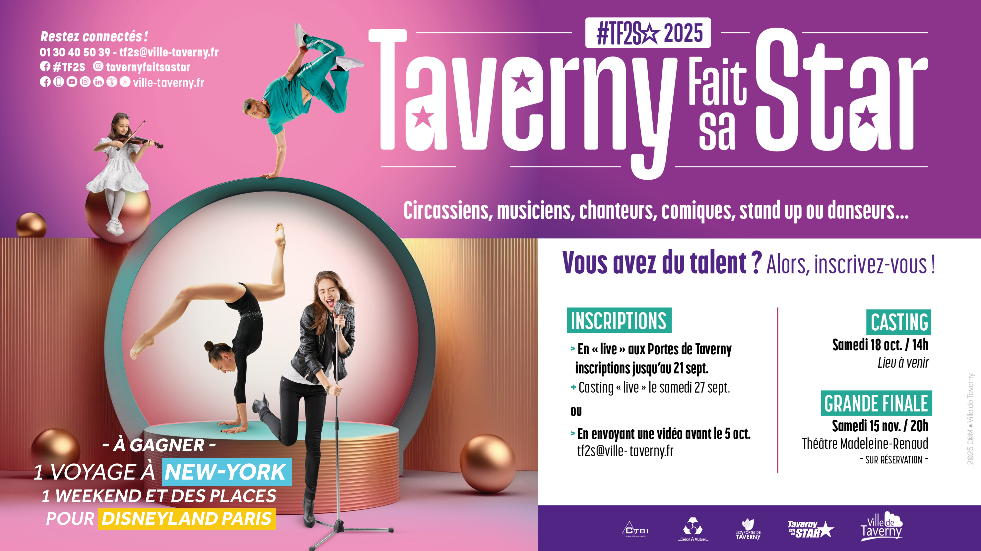 Vous avez du talent ? Inscrivez-vous avant le 21 septembre 2025 à minuit pour participer à la présélection live qui aura lieu aux Portes de Taverny le 27 septembre, de 14h à 16h.