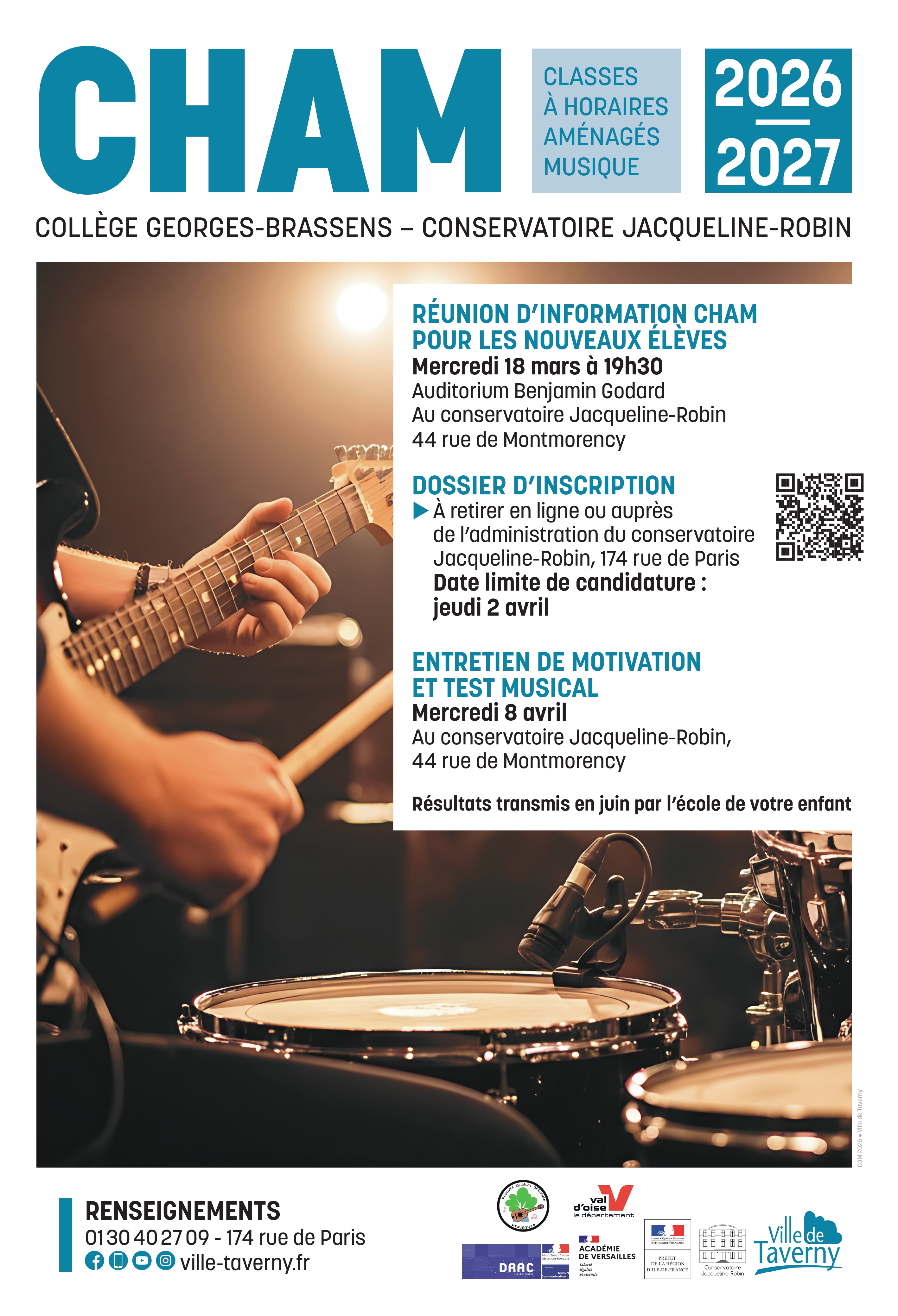 - Réunion d'information le mercredi 18 mars à 19h30 au conservatoire Jacqueline-Robin, 44 rue de Montmorency, Auditorium Benjamin-Godard.