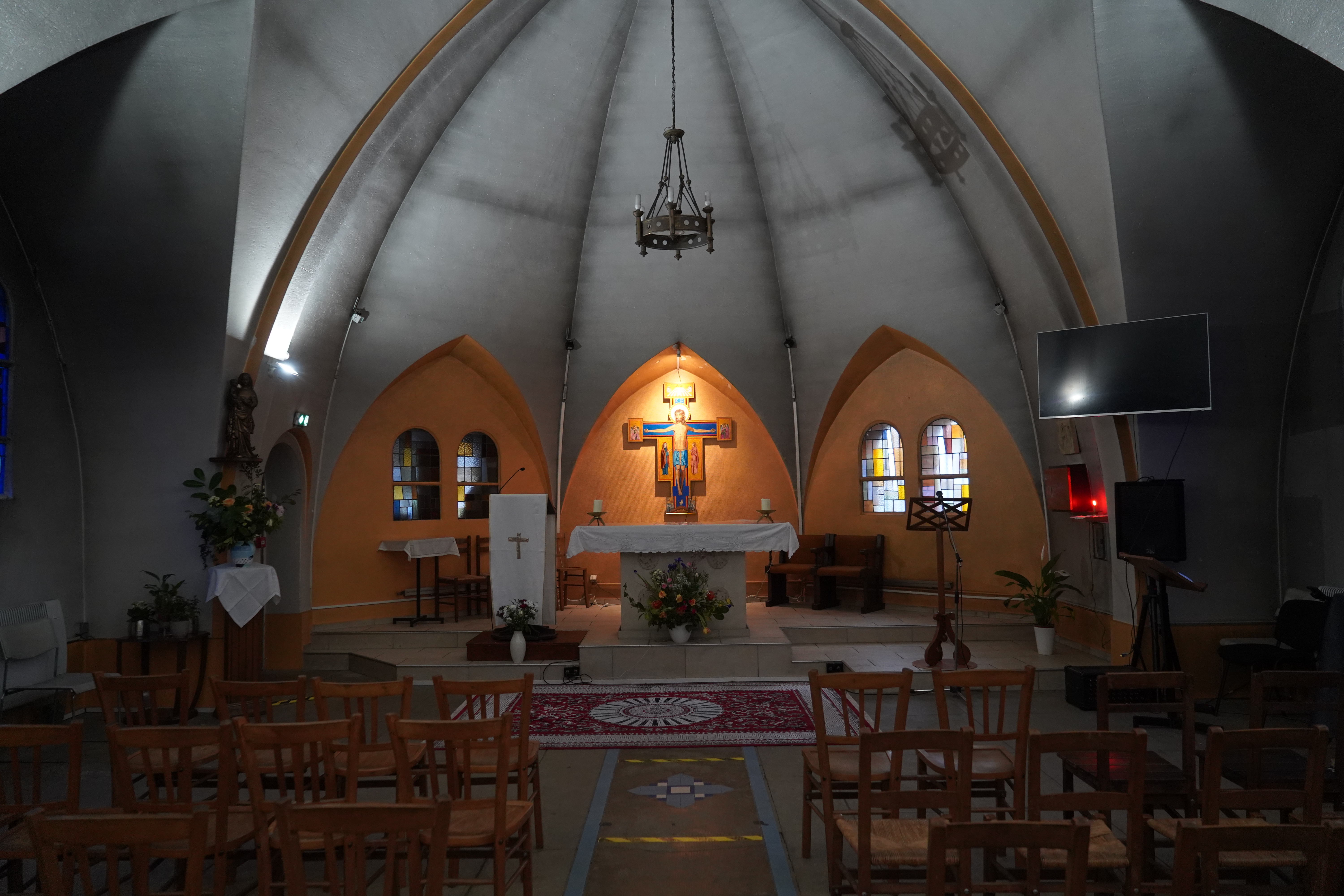 Après plusieurs mois de travail, l’autel est inauguré en 1957 et installé au centre de l’abside nord, où il trouve parfaitement sa place aux côtés de la statue mariale.